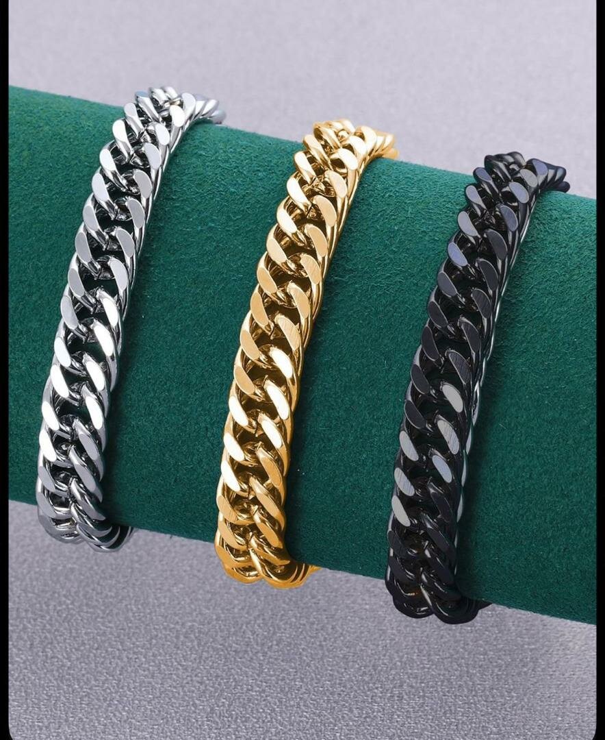 Découvrez ce bracelet chaîne homme, disponible en argent, or et noir, parfait pour un style élégant et moderne. Fait en matériel durable, idéal pour toutes occasions et cadeaux.