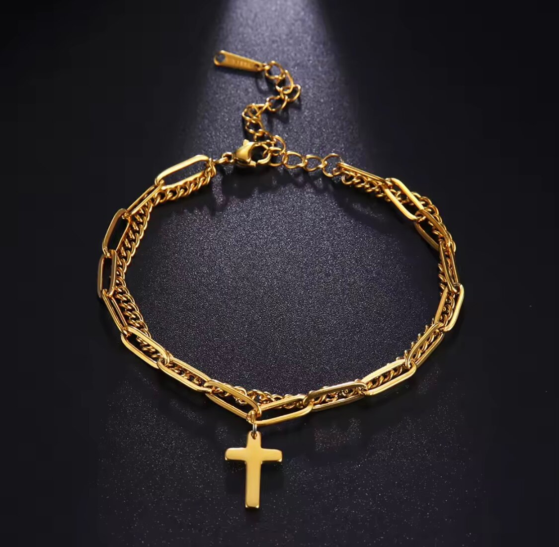Élégant bracelet en acier inoxydable avec pendentif croix. Résistant à la corrosion, idéal pour un style intemporel au quotidien ou pour offrir en cadeau. Ajustable pour un confort parfait.