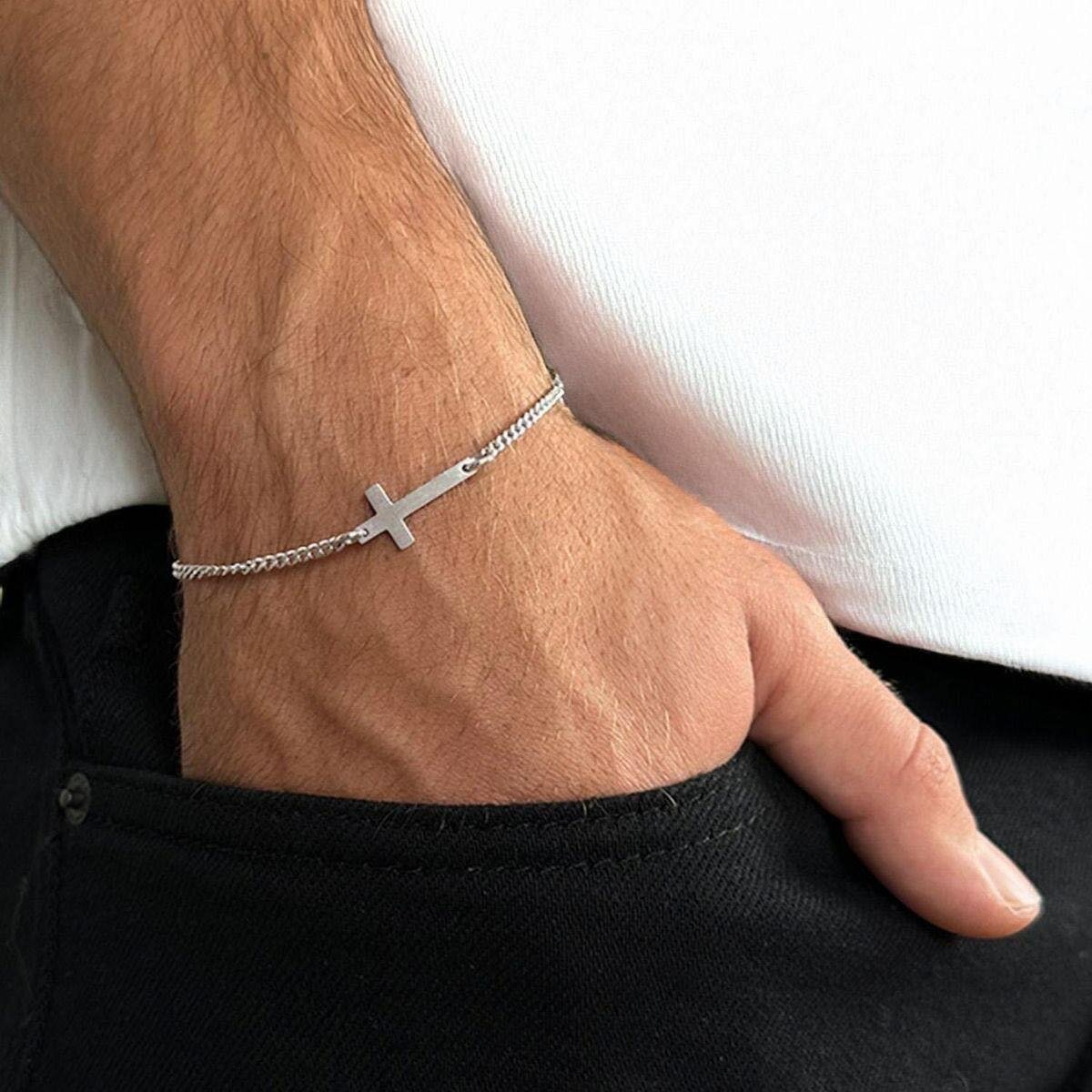 Affiche ton style avec élégance grâce à ce bracelet fin orné dune croix horizontale en acier inoxydable. Léger, discret et résolument tendance, il se porte aussi bien au quotidien quen occasion spéciale. Résistant à leau et à lusure, cest le bijou parfait pour ajouter une touche de foi et de modernité à ton look.