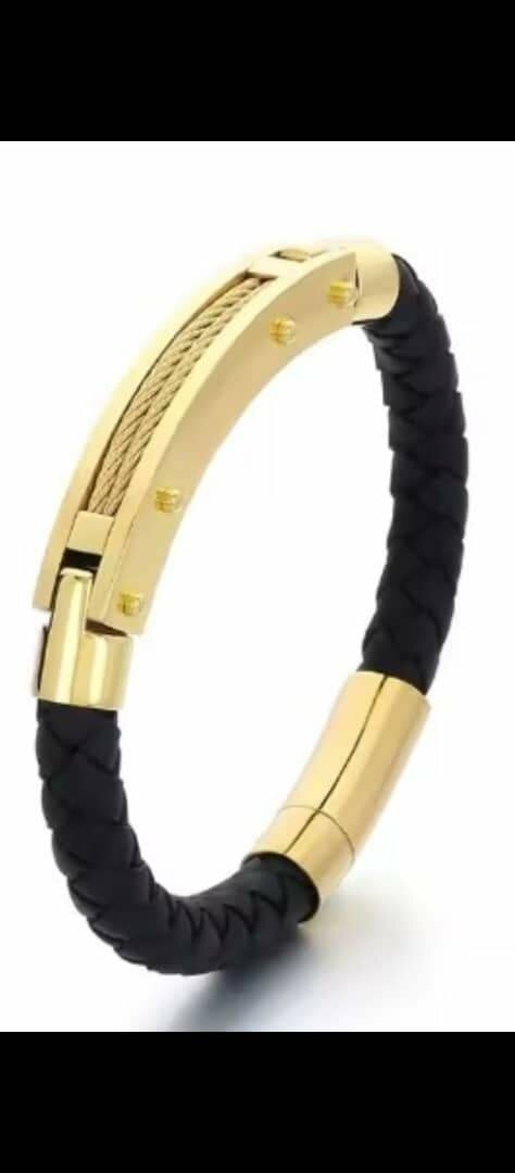 Élégant bracelet en cuir tressé et acier inoxydable doré, parfait pour ajouter une touche sophistiquée à toute tenue. Idéal pour les hommes cherchant un accessoire moderne et stylé. Confortable à porter, il complète à merveille un look décontracté ou professionnel. Un cadeau parfait pour toute occasion spéciale.