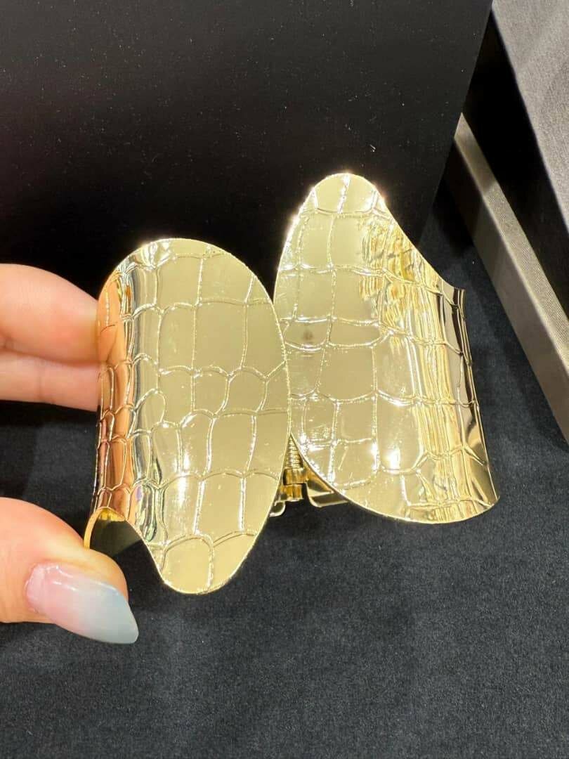 Optez pour ce bracelet doré avec motif crocodile pour un look sophistiqué et tendance. Parfait pour rehausser vos tenues de soirée ou ajouter une touche de glamour à votre quotidien. Idéal pour les amateurs de mode et de bijoux uniques.