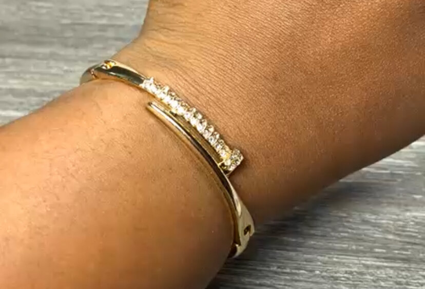 Découvrez ce bracelet doré sophistiqué, idéal pour sublimer vos tenues. Parfait pour les occasions spéciales comme au quotidien, il apporte une touche de luxe et d'élégance à votre style. Doté de détails en strass, il est le choix parfait pour un look raffiné.