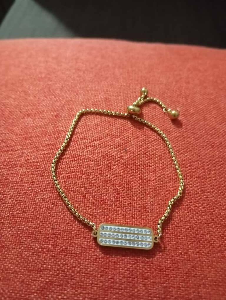 Découvrez notre bracelet doré étincelant, parfait pour ajouter une touche de glamour à votre tenue. Ce bracelet ajustable, orné de cristaux brillants, est idéal pour des occasions spéciales ou pour agrémenter votre look quotidien. Un accessoire incontournable pour toutes les amatrices de bijoux.