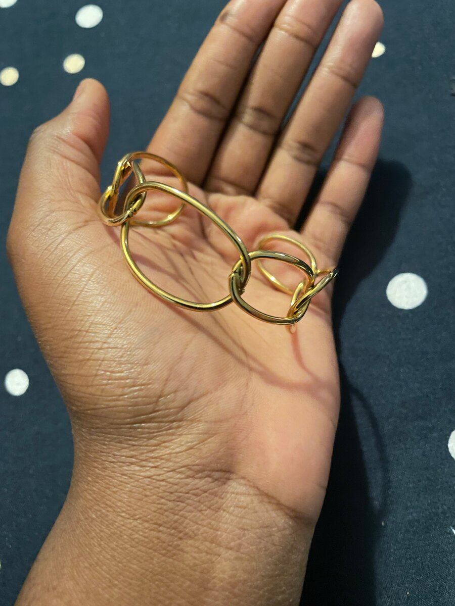Ce bracelet doré élégant et moderne est l'accessoire parfait pour sublimer n'importe quelle tenue. Fabriqué avec un design enchaîné unique, il est à la fois léger et confortable à porter au quotidien. Que ce soit pour une journée au bureau ou une soirée entre amis, ce bracelet est l'ajout idéal à votre collection de bijoux. Optez pour un style chic et intemporel avec cet accessoire incontournable.