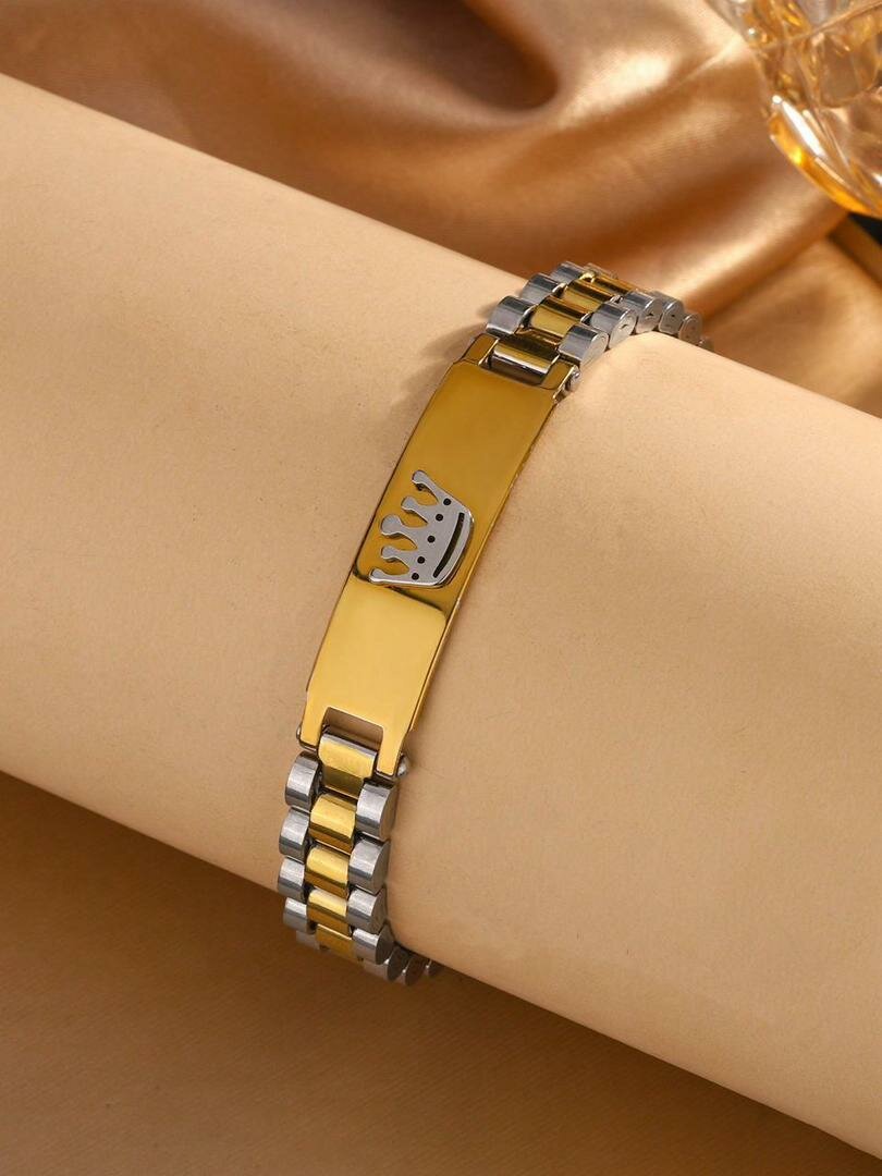 Élégant bracelet en acier inoxydable avec une finition bicolore dorée et argentée. Parfait pour ajouter une touche de sophistication à toute tenue. Idéal pour un usage quotidien ou des occasions spéciales. Excellente idée cadeau.