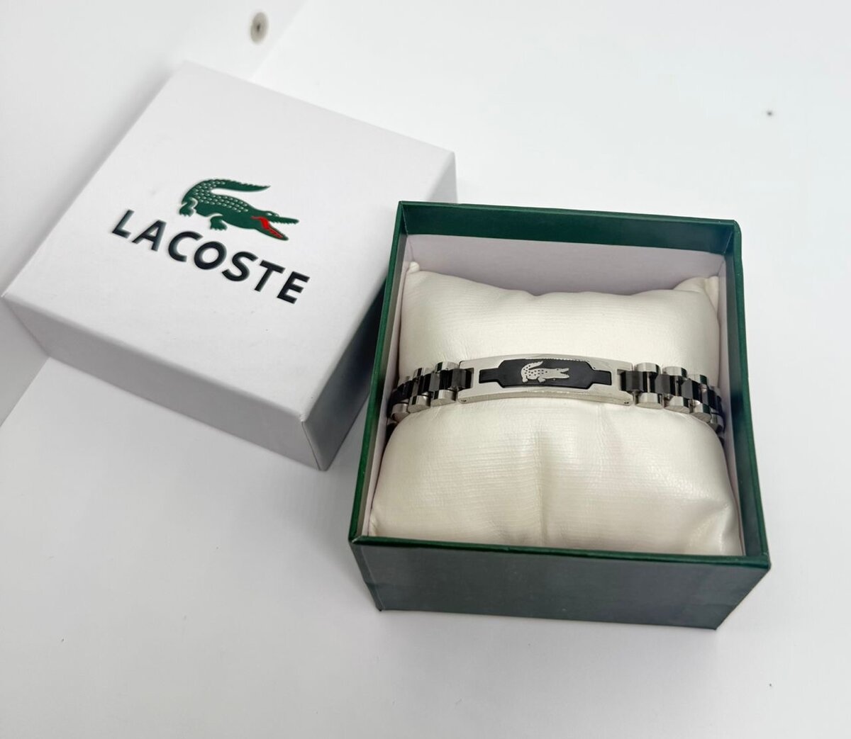 Élégant bracelet Lacoste en acier inoxydable. Parfait pour un look chic et moderne, avec le logo iconique. Idéal pour toutes occasions ou comme cadeau.
