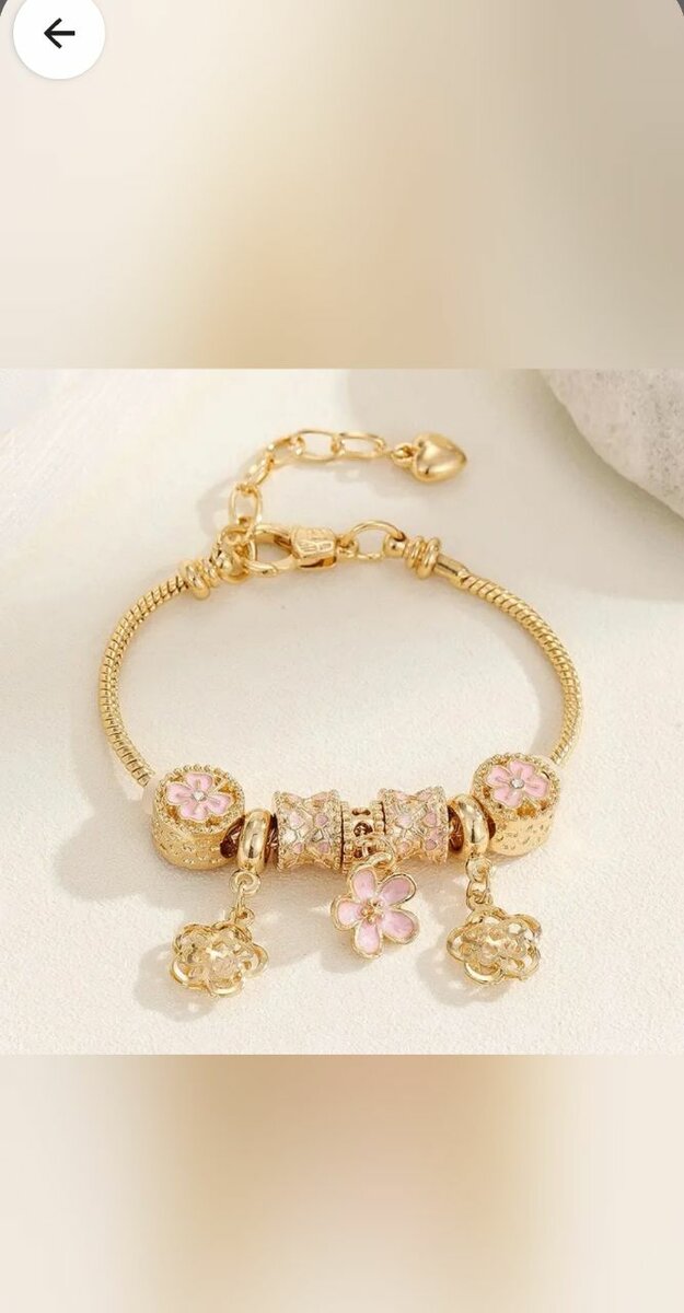 Découvrez notre bracelet en or orné de délicates fleurs roses et de charms élégants. Parfait pour sublimer vos tenues avec une touche de glamour et d'élégance. Idéal pour offrir ou se faire plaisir, ce bijou apporte une touche florale et chic à votre style.