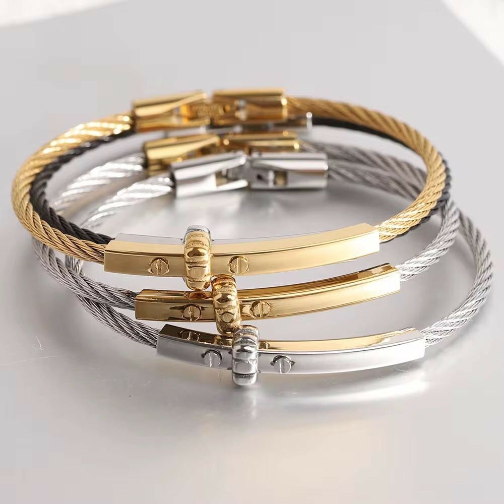 Optez pour l'élégance moderne avec ce bracelet en acier inoxydable. Parfait pour hommes et femmes, sa finition en or et argent ajoute une touche sophistiquée à n'importe quelle tenue. Idéal pour un usage quotidien ou un cadeau spécial. Sa construction robuste assure une longue durée de vie.