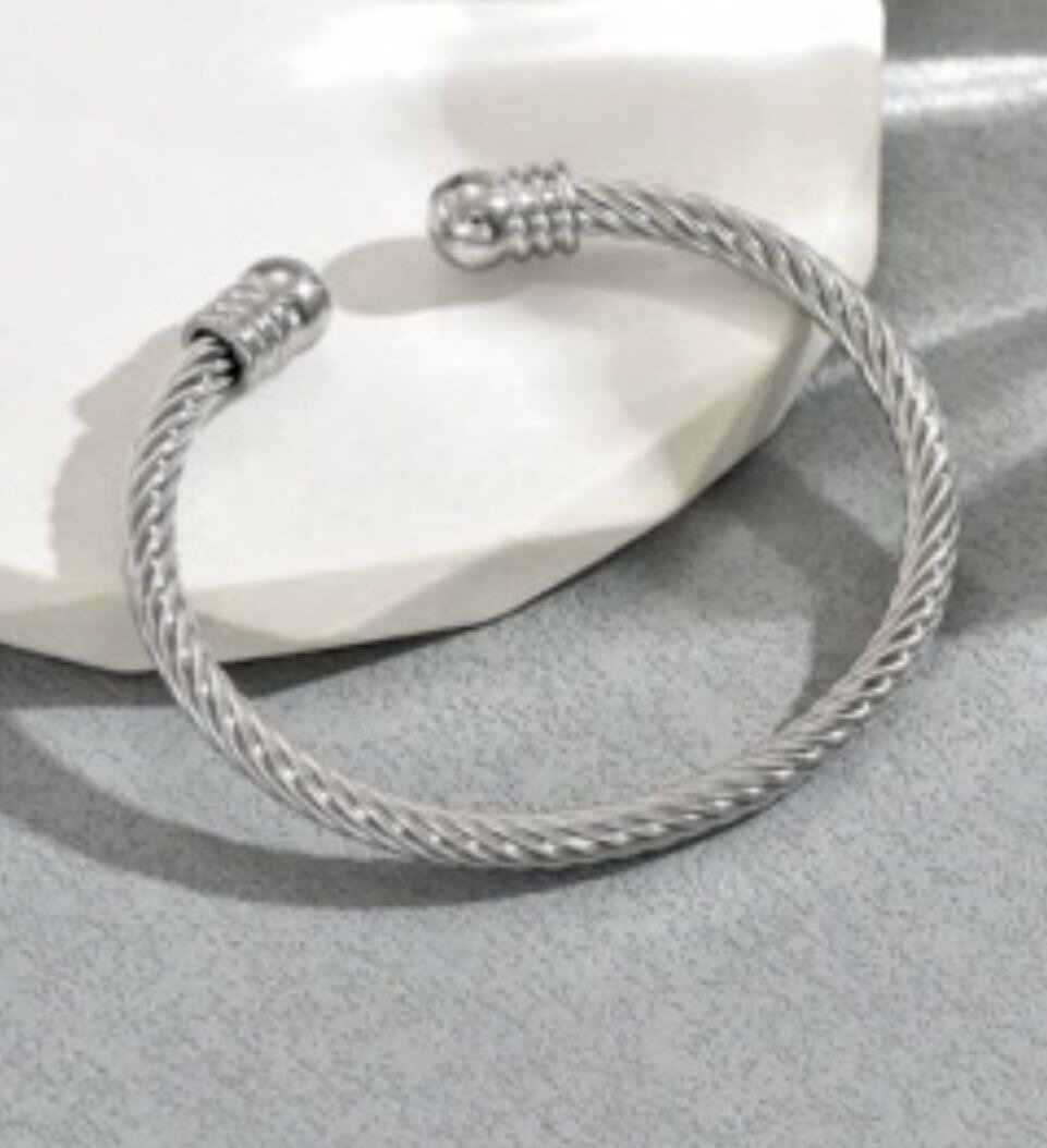 Élégant bracelet en acier inoxydable torsadé, parfait pour ajouter une touche sophistiquée à votre style quotidien.