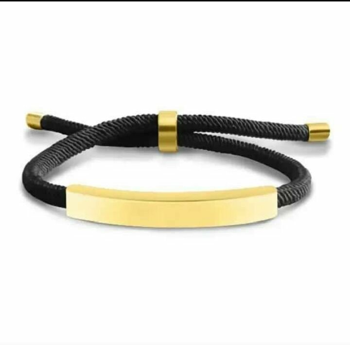 Ajoutez une touche élégante à votre tenue avec ce bracelet ajustable en corde noire et plaqué or. Parfait pour toutes les occasions, il s'adapte à tous les poignets grâce à son fermoir coulissant. Idéal pour un style moderne et sophistiqué.
