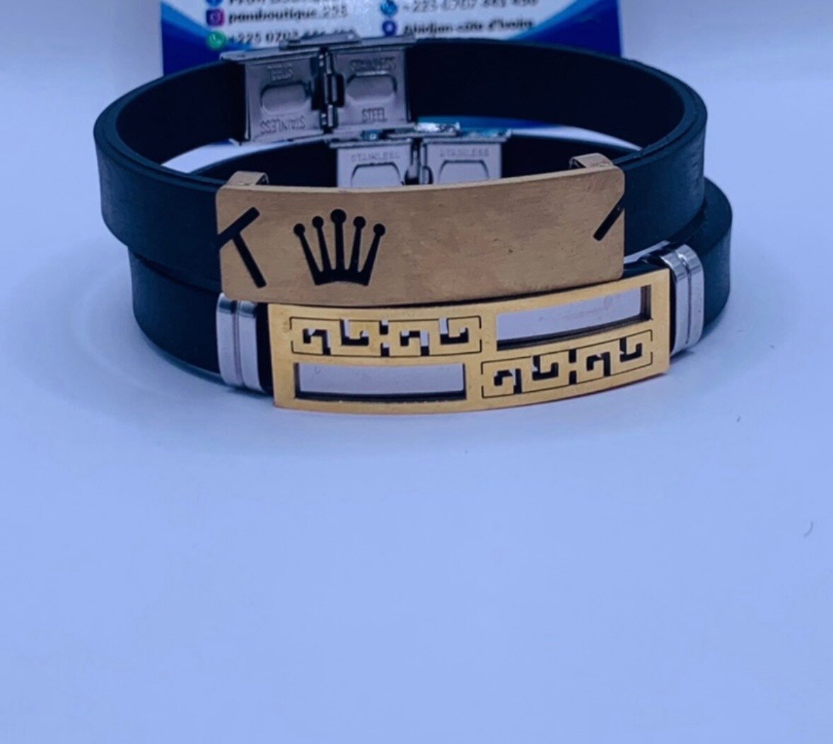 Découvrez notre bracelet élégant, conçu avec un cuir noir de qualité et des détails métalliques dorés. Parfait pour compléter une tenue moderne et stylée. Idéal pour un cadeau ou un accessoire quotidien.