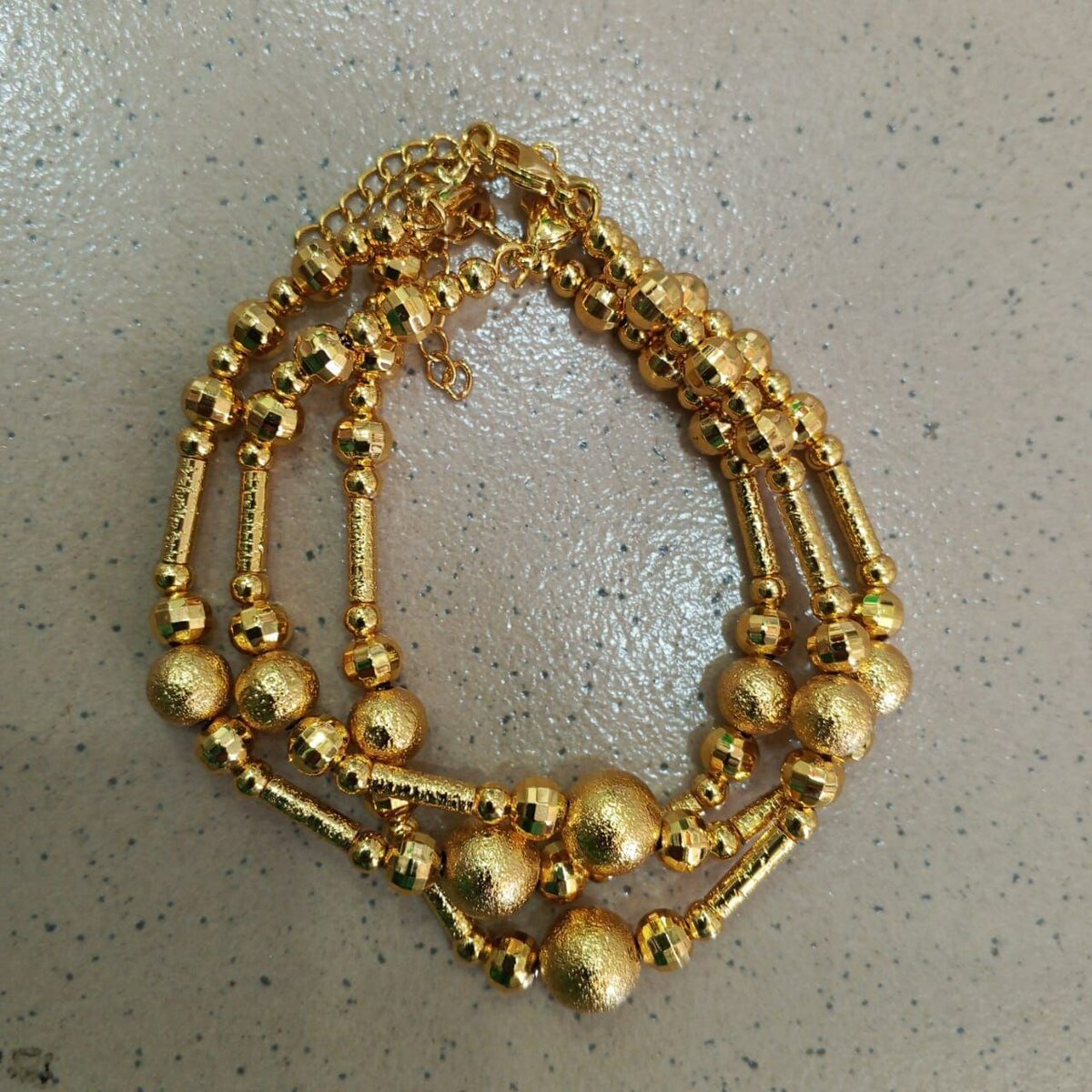 Découvrez ce magnifique bracelet en perles dorées. Idéal pour ajouter une touche d'élégance à n'importe quelle tenue, ce bracelet est parfait pour les occasions spéciales ou pour un usage quotidien élégant. Sa finition brillante et son design unique en font un cadeau parfait pour vous ou un être cher.
