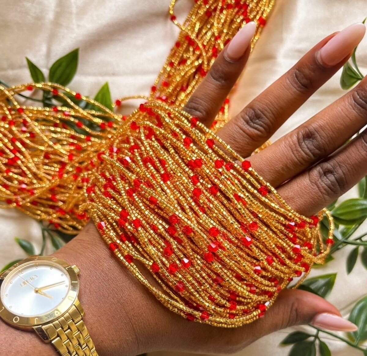 Élégant baya en perles dorées et rouge