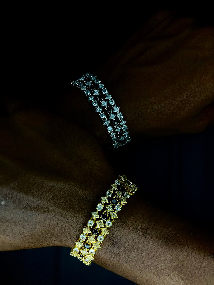 Élégant bracelet en strass, disponible en or et argent. Parfait pour ajouter une touche de glamour à n'importe quelle tenue. Idéal pour les occasions spéciales ou un usage quotidien.