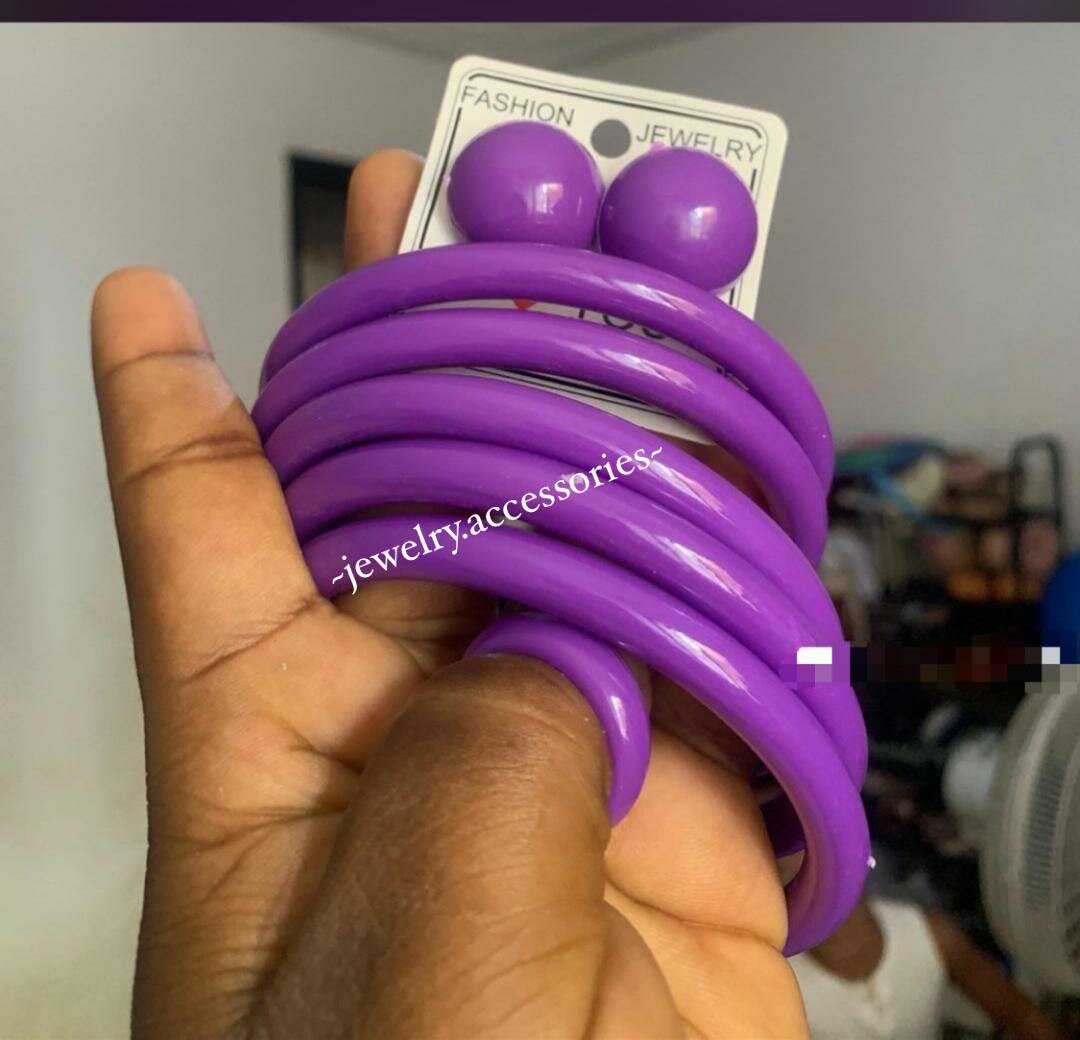 Exprimez votre style avec cet ensemble vibrant de bijoux. Disponible en bleu, orange et violet, ce set de bracelets et boucles d'oreilles ajoute une touche tendance à toute tenue. Parfait pour soirées, événements ou un look quotidien unique. Fait pour briller!