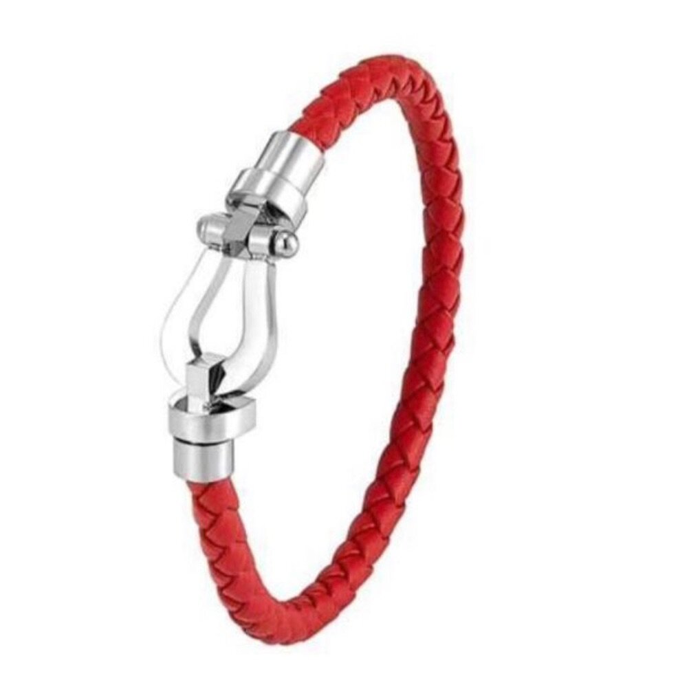 Élégant bracelet en cuir rouge tressé avec fermoir en acier inoxydable. Parfait pour ajouter une touche de style à toute tenue. Idéal pour un usage quotidien ou des occasions spéciales.