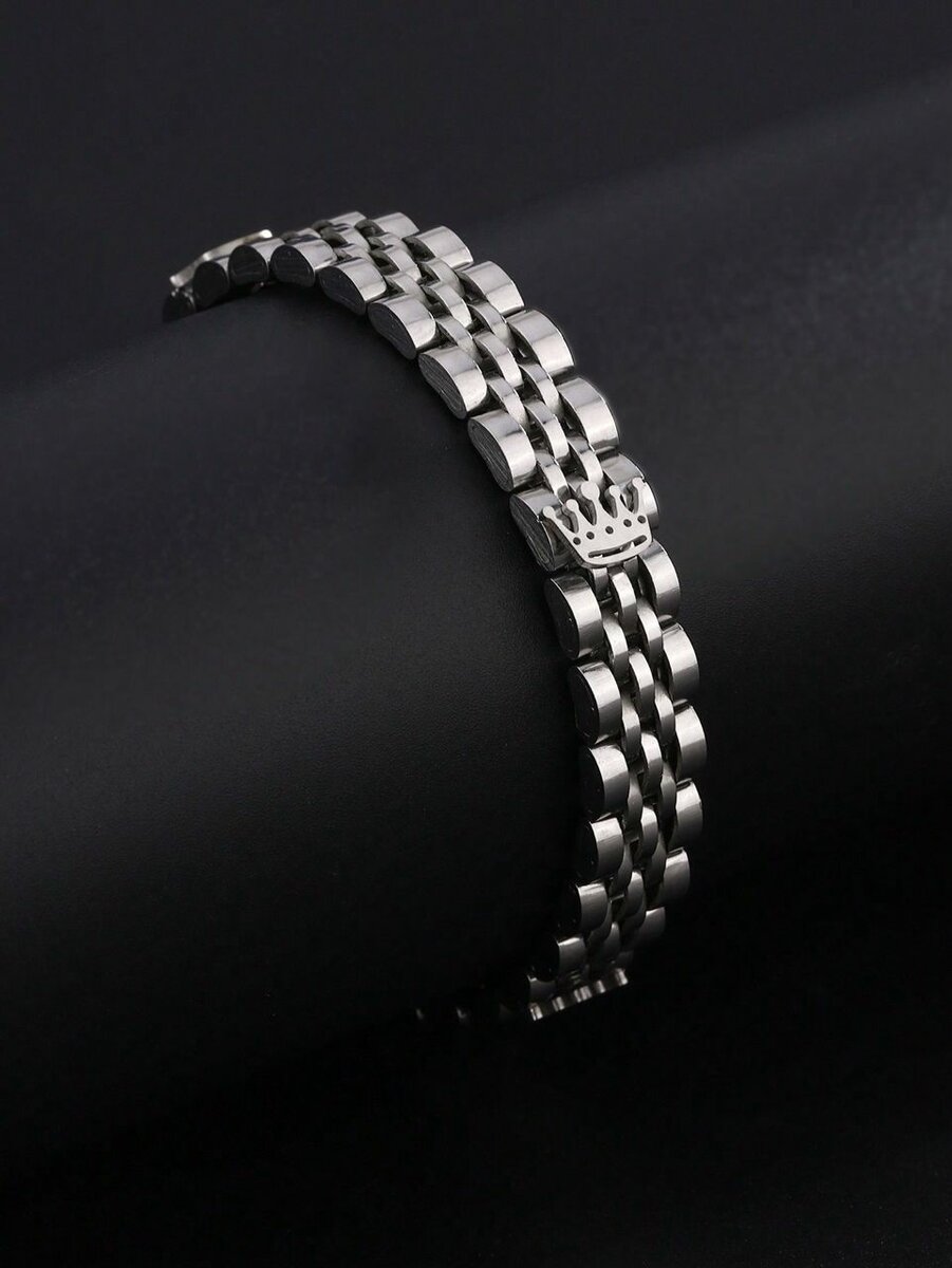 Élégant bracelet en acier inoxydable pour homme, orné d'un motif couronne. Idéal pour un look sophistiqué, parfait pour toutes occasions. Anti-rouille et durable.