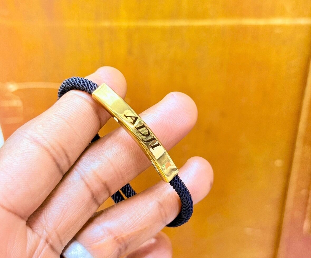 Découvrez notre bracelet personnalisé en or avec un cordon noir élégant. Idéal pour un cadeau spécial ou un bijou personnel, ce bracelet unique s'adapte à toutes les occasions. Personnalisez-le avec un nom pour le rendre vraiment spécial. Parfait pour les hommes et les femmes, ce bracelet apportera une touche d'élégance à votre look quotidien.