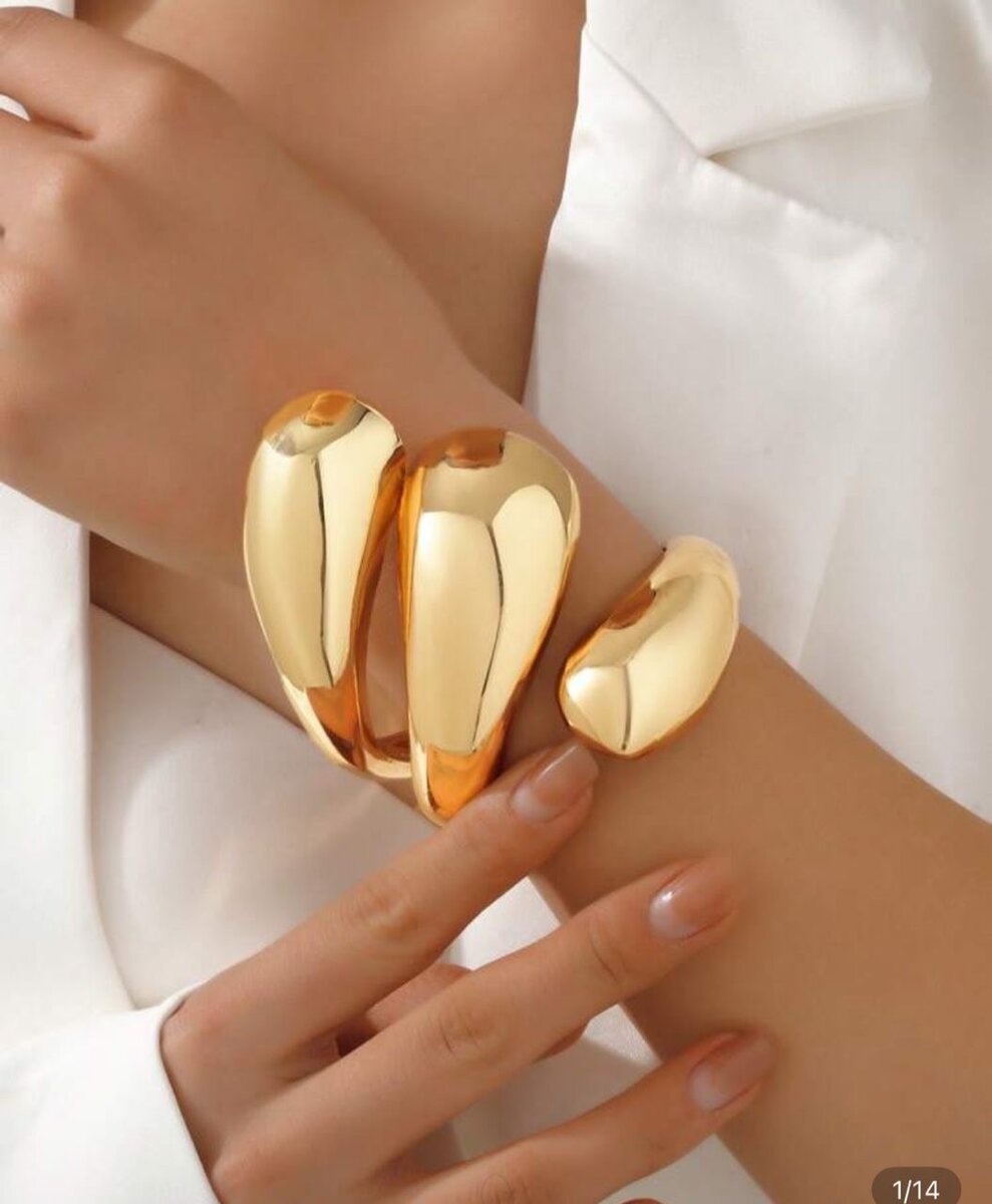 Découvrez ce bracelet doré au design sculptural unique, parfait pour ajouter une touche d'élégance moderne à votre tenue. Idéal pour les événements spéciaux ou pour embellir votre quotidien.