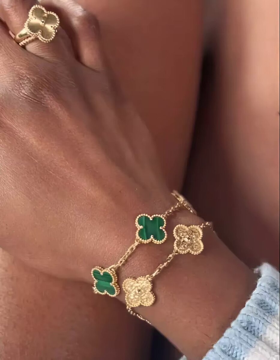 Bracelet trèfle noir doré élégant