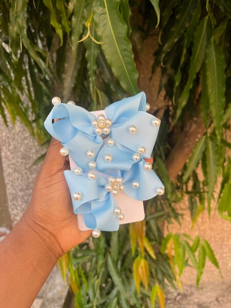 Barrette à nœud perlé bleu