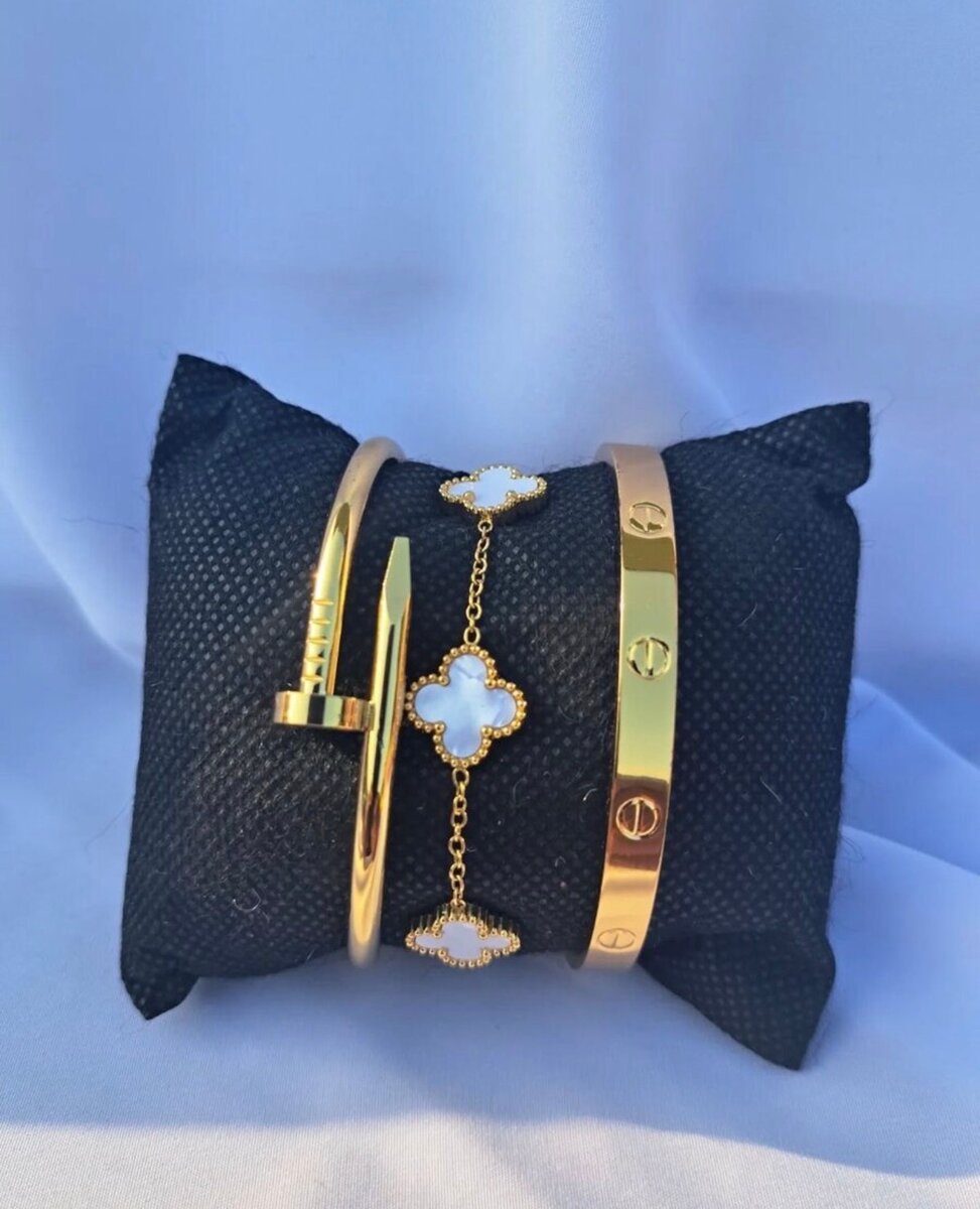 Découvrez ces magnifiques bracelets dorés, parfaits pour sublimer toute tenue. Fabriqués avec soin, ces accessoires élégants allient sophistiqué et modernité. Idéal pour un usage quotidien ou pour des occasions spéciales, ce lot de bracelets est le choix parfait pour ajouter une touche glamour à votre look. Offrez-vous ou à vos proches ces bijoux uniques et tendance.