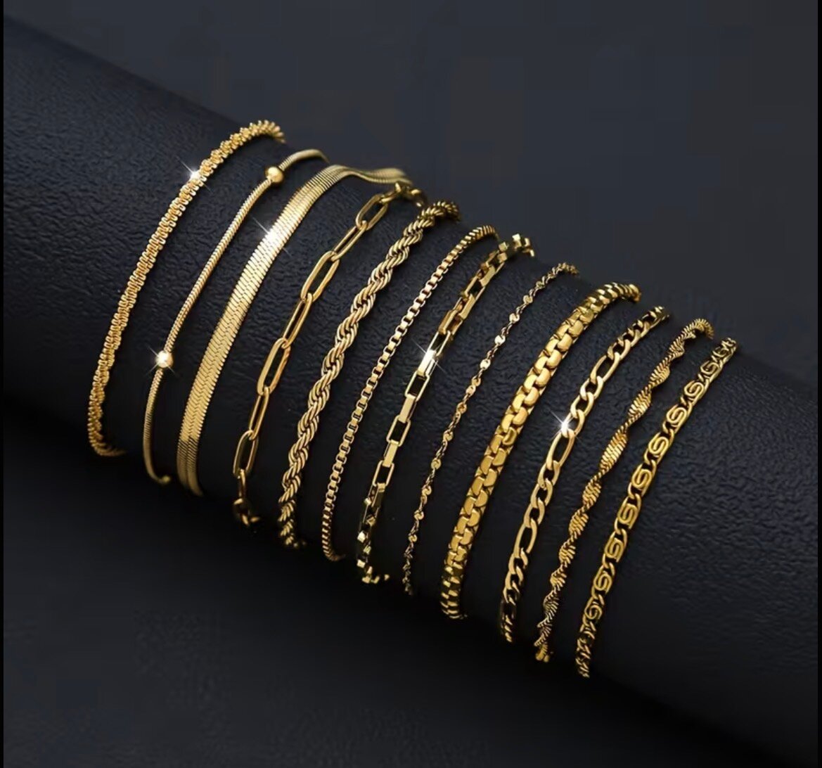Découvrez nos bracelets dorés empilables, un accessoire élégant qui sublime chaque tenue. Parfaits pour un look chic, ces bracelets s'ajustent facilement à votre style. Faits avec soin, ils ajoutent une touche de luxe à votre poignet. Idéal pour toutes les occasions, du quotidien aux événements spéciaux.