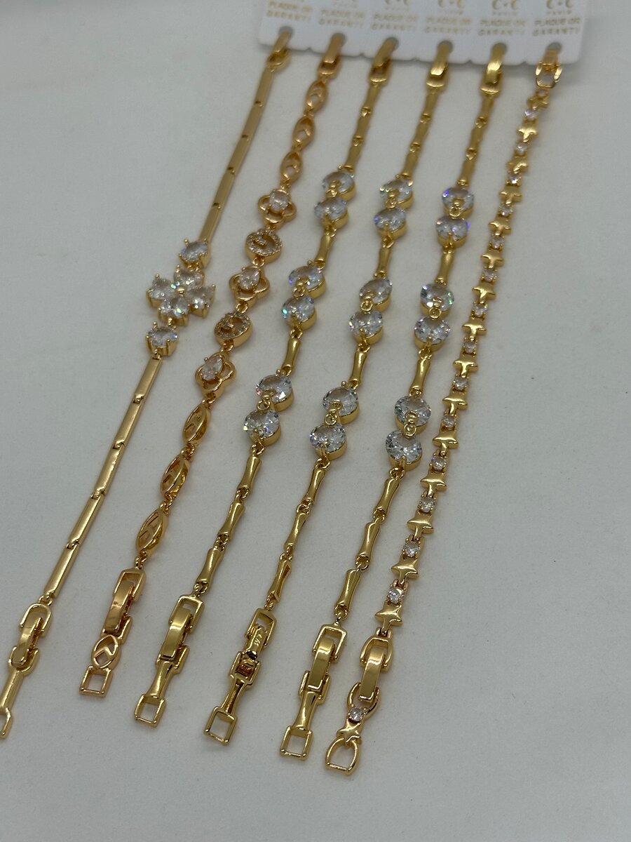 Ensemble de bracelets dorés avec incrustations étincelantes. Parfaits pour apporter une touche de glamour à vos tenues quotidiennes ou pour des occasions spéciales. Un choix chic et raffiné pour compléter votre collection de bijoux. Idéal pour offrir ou se faire plaisir.