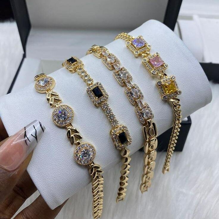 Ajoutez une touche de glamour à votre poignet avec ces magnifiques bracelets en or ornés de pierres scintillantes. Parfaits pour les occasions spéciales, ces bijoux sont un choix idéal pour un look élégant et raffiné. Offrez-vous l'élégance à portée de main.