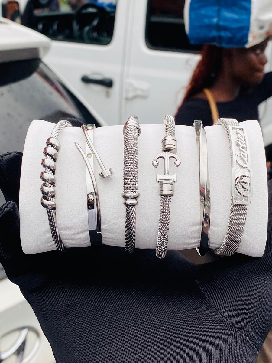 Découvrez notre ensemble élégant de bracelets en acier inoxydable, parfaits pour un style moderne et sophistiqué. Chaque bracelet est conçu avec des détails raffinés pour rehausser votre look quotidien. Idéal pour toute occasion, que ce soit au bureau ou en soirée. Ne ternissez pas et résistent à l'usure.