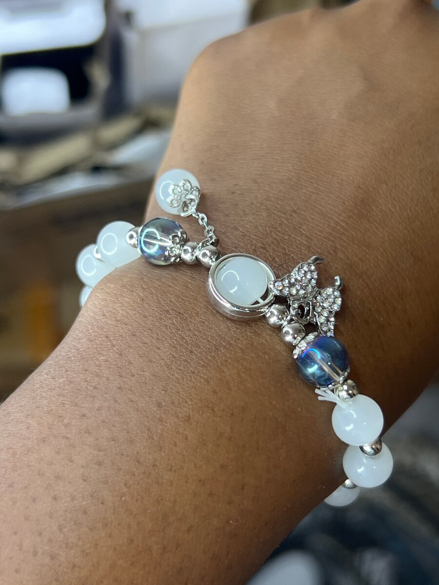 Découvrez ce bracelet élastique en perle avec un papillon et un pendentif .