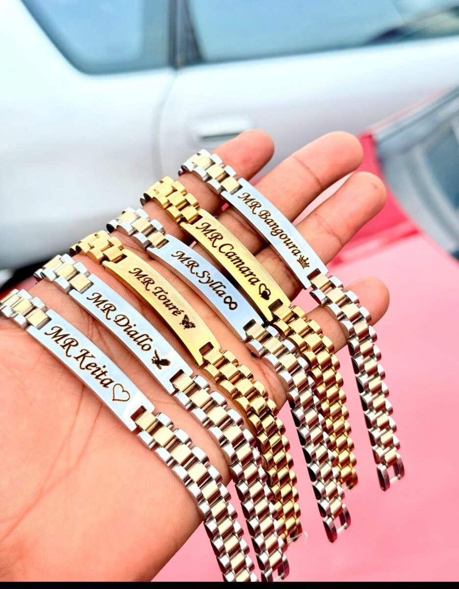 Découvrez ces élégants bracelets personnalisés avec gravures. Fabriqués en acier inoxydable, ils sont parfaits pour offrir ou se faire plaisir. Un choix idéal pour immortaliser un nom ou un message cher.