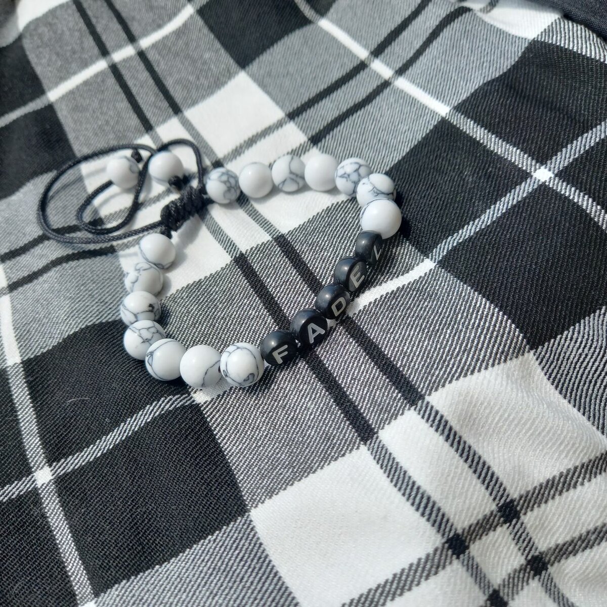 Bracelets chambala personnalisés avec des perles blanches marbrés L'unité à 1000frs