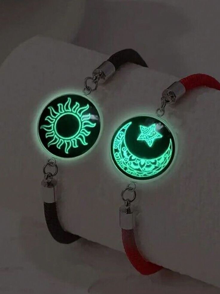 Découvrez nos bracelets magiques phosphorescents avec motifs de soleil et lune. Idéal pour ajouter une touche mystique à votre style de nuit. Parfait pour les soirées ou comme cadeau unique. Brille intensément dans l'obscurité!