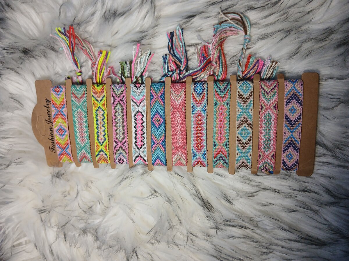 Découvrez ces magnifiques bracelets tissés à la main aux motifs vibrants et colorés. Parfaits pour ajouter une touche bohème à votre style, ces bracelets sont ajustables et idéals pour tous les poignets. Portez-les seuls pour un look subtil ou en assortiment pour un impact visuel maximal lors de vos sorties estivales ou festivals.