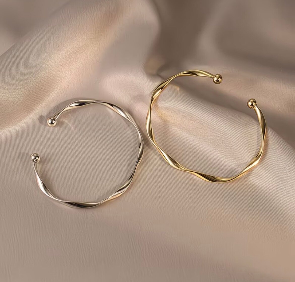 Ajoutez une touche d'élégance à votre tenue avec ces bracelets torsadés en or et argent. Parfaits pour toutes les occasions, ils sont conçus pour s'adapter à votre poignet avec style et confort. Ces accessoires chic complèteront parfaitement votre look quotidien ou rehausseront une tenue spéciale. Offrez-vous ou offrez à un être cher ce bijou intemporel et raffiné.