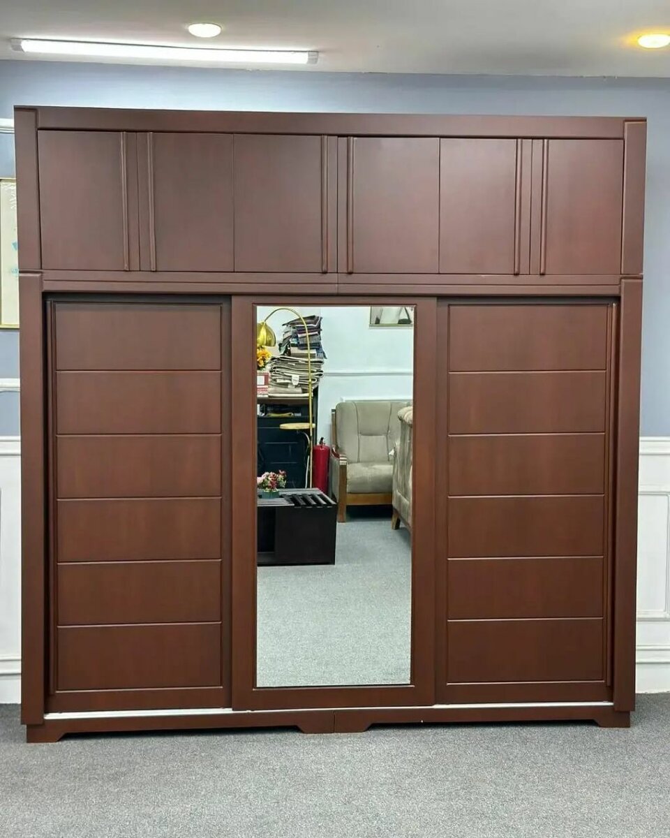 Wooden and mirror sliding big 3 in 1 wardrobe