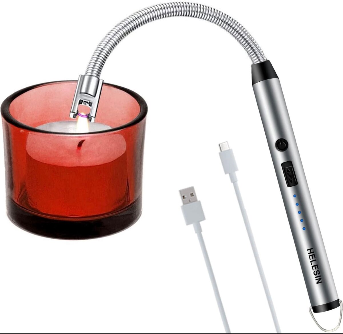 Cou de 11 cm plus long : lors du développement du briquet électrique, nous avons pris en compte le fait que la plupart des gens allument des poêles, des bougies, des cheminées, etc. Pour éviter les blessures causées par les flammes, nous avons développé un cou plus long et plus flexible.