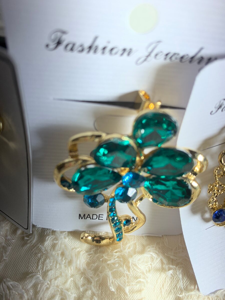 Ajoutez une touche d'élégance avec cette broche en forme de trèfle. Parfaite pour les occasions spéciales, elle brille d'une couleur émeraude resplendissante montée sur une base dorée. Idéale pour sublimer n'importe quelle tenue ou comme un cadeau raffiné.