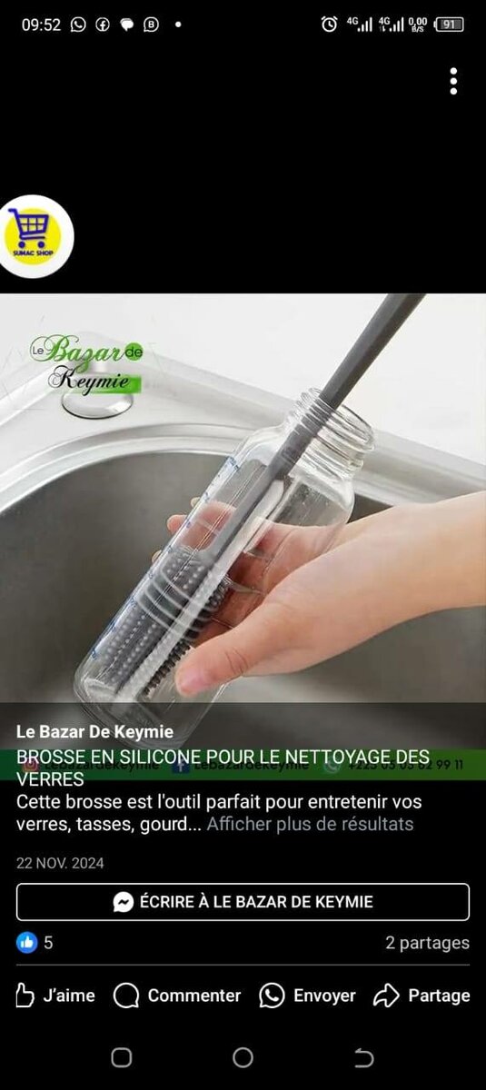 Nettoyez facilement vos verres, tasses et gourdes avec cette brosse en silicone résistante. Pratique et efficace, elle est idéale pour atteindre les endroits difficiles. Parfaite pour une maison bien entretenue.