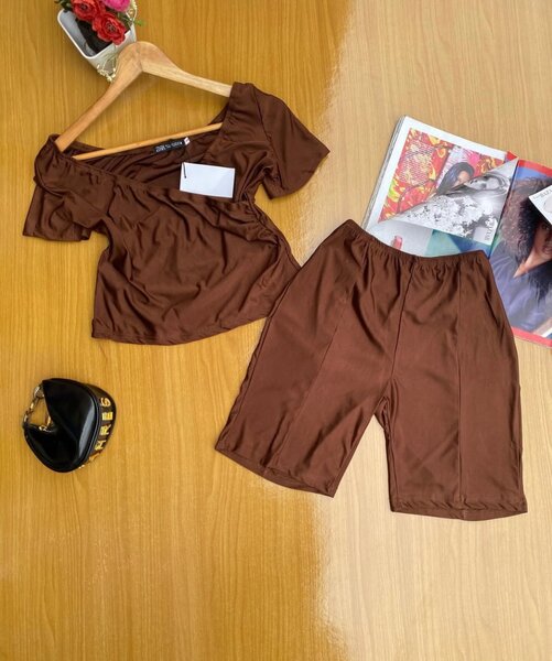 Ensemble crop top et jupe longue beige