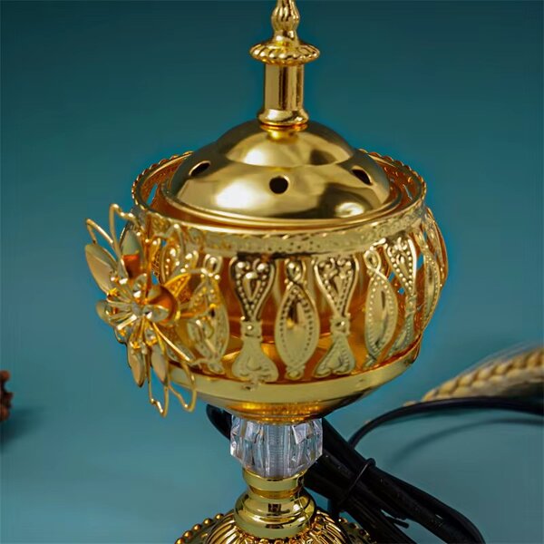 Ce brûleur d'encens électrique doré est idéal pour créer une atmosphère paisible dans votre maison. Avec son design raffiné et sa finition dorée, il offre une diffusion homogène de vos encens préférés. Facile à utiliser grâce à son interrupteur intégré, il est parfait pour la relaxation, la méditation ou simplement pour embellir votre espace. Un choix élégant pour toute décoration intérieure.