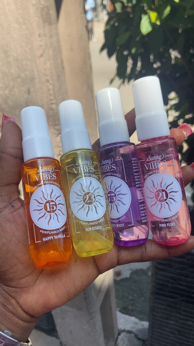 Découvrez notre collection de brumes parfumées Sunny Vibes, conçue pour rafraîchir et ravir vos sens! Idéales pour un usage quotidien, elles laissent une douce et légère fragrance qui vous accompagne partout. Parfait pour le sac à main, ces brumes sont un choix idéal pour sentir bon à tout moment, que ce soit au bureau ou en soirée. Profitez d'une sensation de bien-être instantanément!