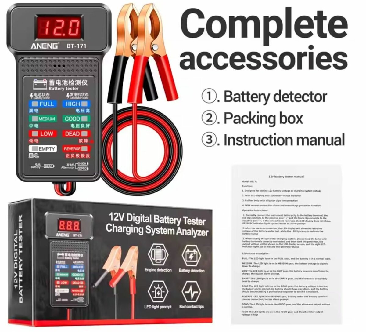 BT-171 12V Multifonctionnel Batterie Testeurs Auto