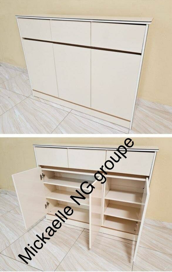 Buffet blanc moderne avec portes et étagères. Idéal pour le rangement dans le salon ou la salle à manger. Design élégant et spacieux, parfait pour organiser votre espace et donner une touche contemporaine à votre intérieur.