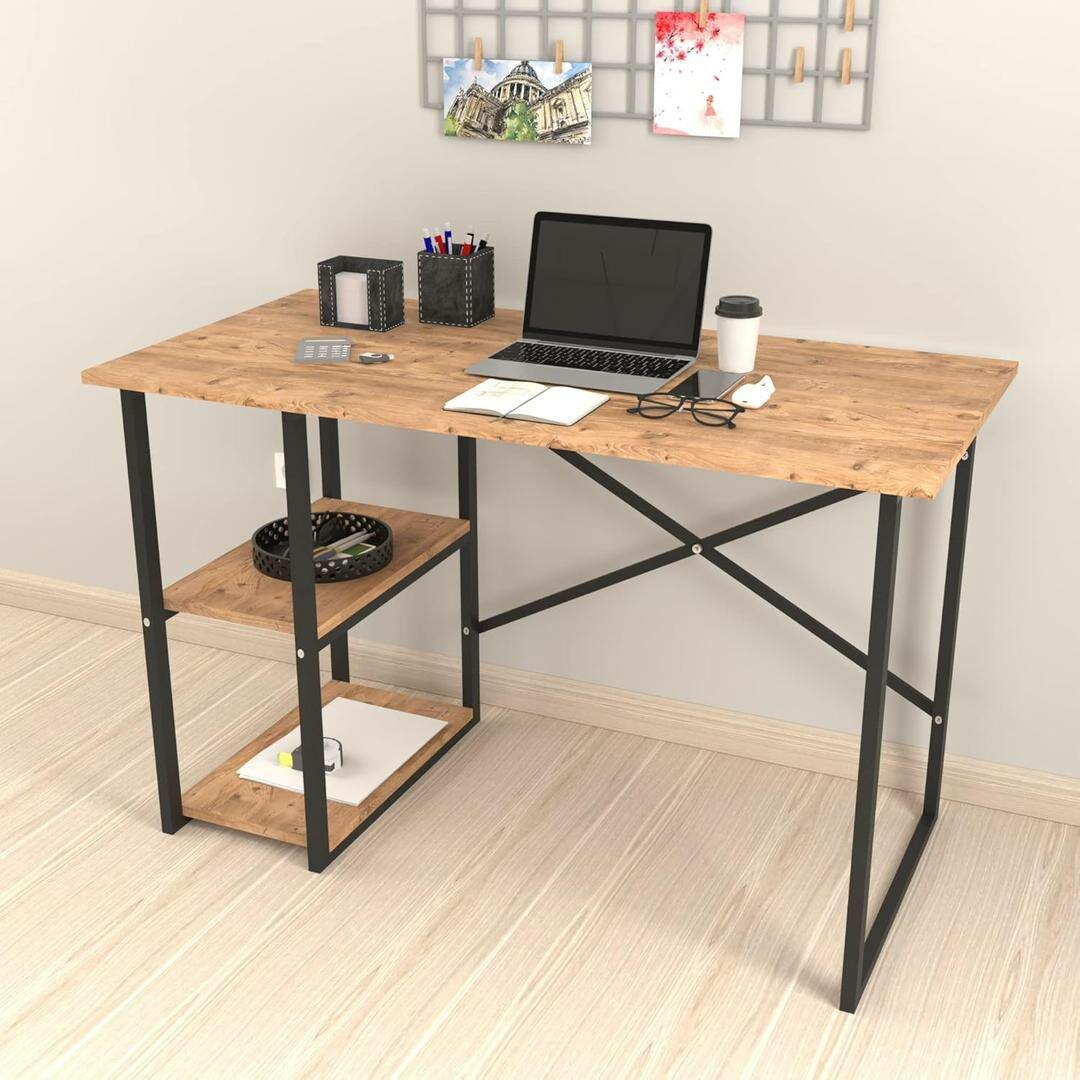 Ce bureau d'ordinateur moderne avec étagères est idéal pour optimiser votre espace de travail. Fabriqué avec un plan en bois robuste et un cadre en métal noir, il offre durabilité et style. Les étagères intégrées permettent de ranger facilement vos accessoires. Convient pour la maison ou le bureau, il offre une surface de travail spacieuse et organique. Transformez votre espace de travail avec ce bureau élégant et fonctionnel.