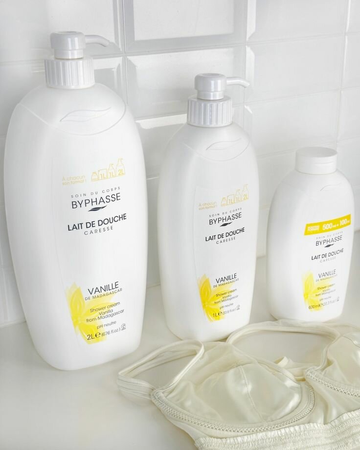 Byphasse à la vanille, idéal pour une peau douce et parfumée. 2L