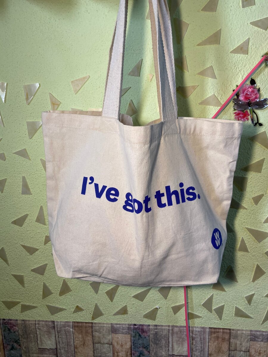 Élégant cabas en toile avec inscription "I've got this". Idéal pour le shopping, les courses ou la plage. Fabriqué en tissu durable, il offre une grande capacité et des anses confortables. Un accessoire pratique et tendance pour un usage quotidien.