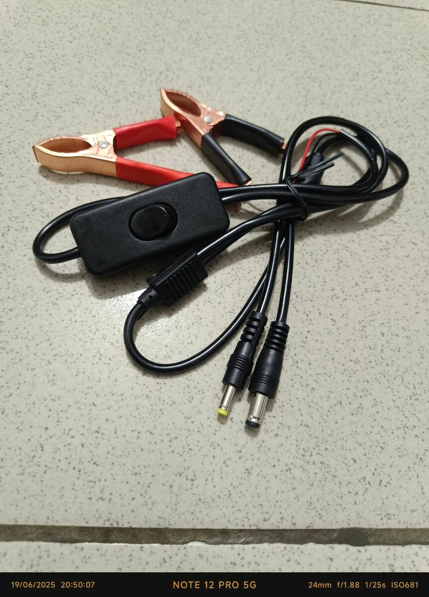Câble d'alimentation polyvalent avec interrupteur intégré et pinces crocodiles robustes. Idéal pour alimenter divers appareils électroniques en toute sécurité. Parfait pour des utilisations automobiles ou domestiques.