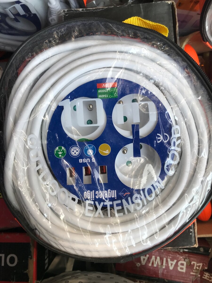Câble d'extension extérieur robuste avec plusieurs prises et ports USB, idéal pour le jardin ou le chantier. Supporte une charge élevée et garantit une sécurité optimale. Longueur généreuse pour une utilisation flexible en extérieur.